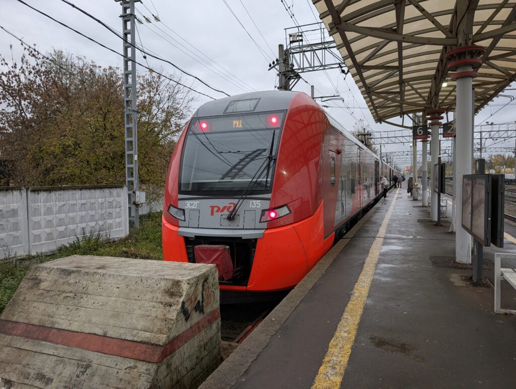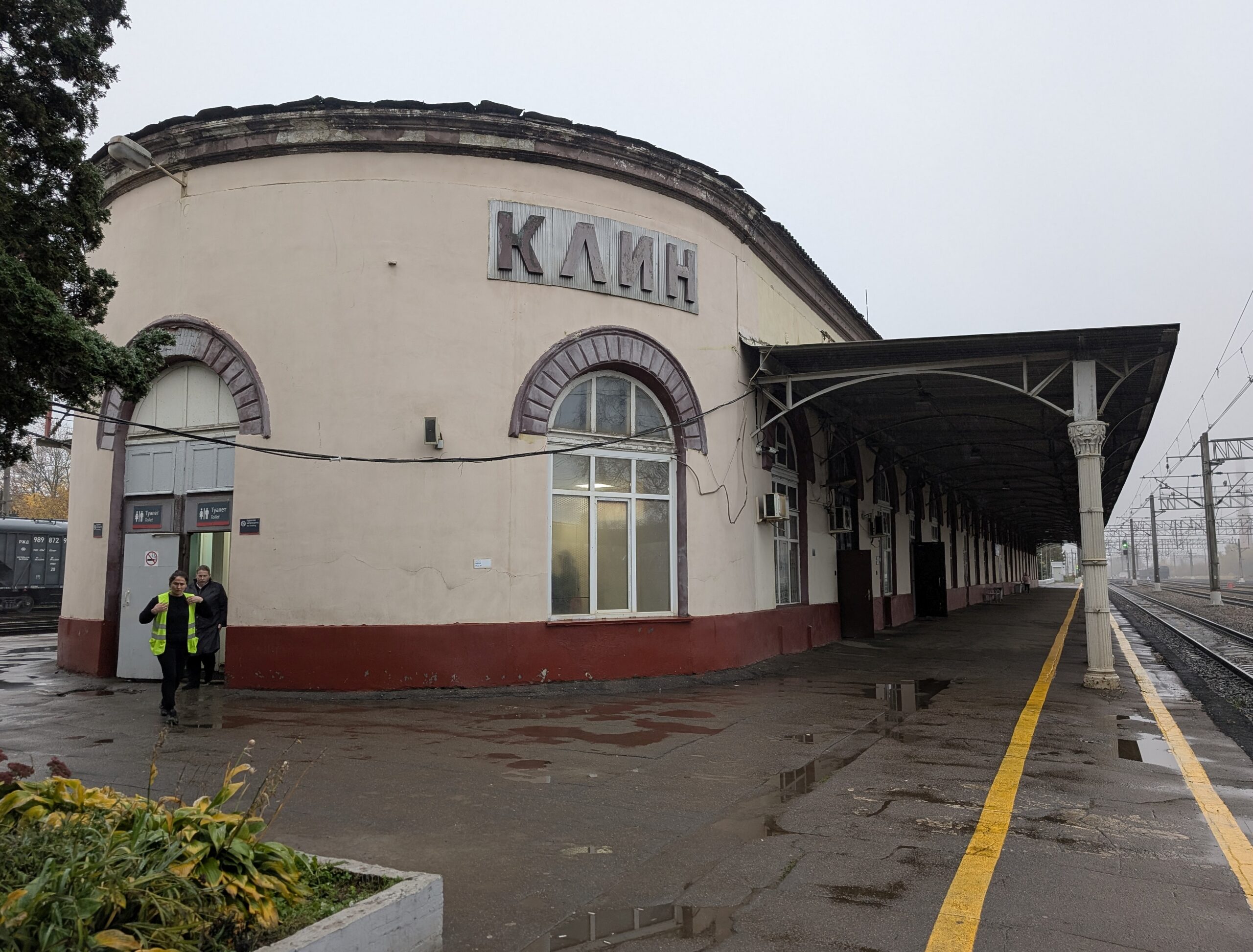 Суббота, 11 октября. Всё перевернулось с ног на голову — ведь ещё где-то две недели назад я не мог даже и предположить, что такая поездка может состояться. Но вот я здесь, и хотя погода оставляет желать лучшего, ощутимой помехи она всё же не представляет — за последнюю неделю я успел обзавестись необходимой для более суровых погодных условий экипировкой. Выгружаемся из электропоезда-экспресса на станции Клин, откуда будем ехать обратно до Солнечногорска — электричек там больше, а значит, меньше шанс, что придётся куковать на вокзале в ожидании.