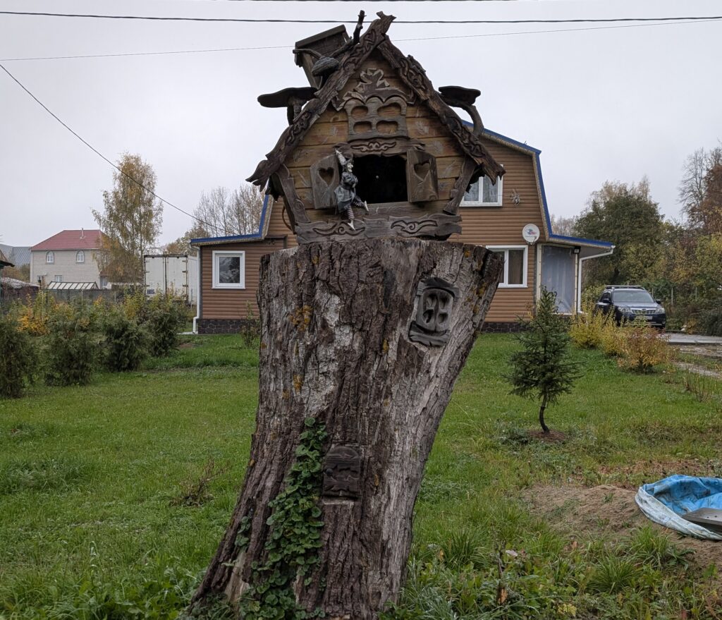 Вместе с асфальтом возвращается и дождь, не перестающий донимать нас в течение следующего часа. Начинаю задумываться о покупке велосипедных очков с водоотталкивающим покрытием, если таковые существуют (уверен, что почти наверняка). Кстати, а не поможет ли нам прогнать ненастье местная баба-яга? Хотя постойте-ка — избушка же не на курьих ножках… Кто здесь вообще живёт?
