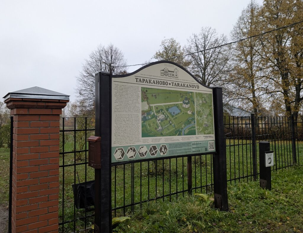 В полутора километрах от атмосферного пруда находится ещё одно не менее атмосферное место — территория бывшей усадьбы Тараканово. Следует заметить, что тараканы к ней никакого отношения не имеют: название происходит от фамилии дворянского рода, чьи представители когда-то владели этими землями. Главный усадебный дом не сохранился, но и без него тут есть на что посмотреть.