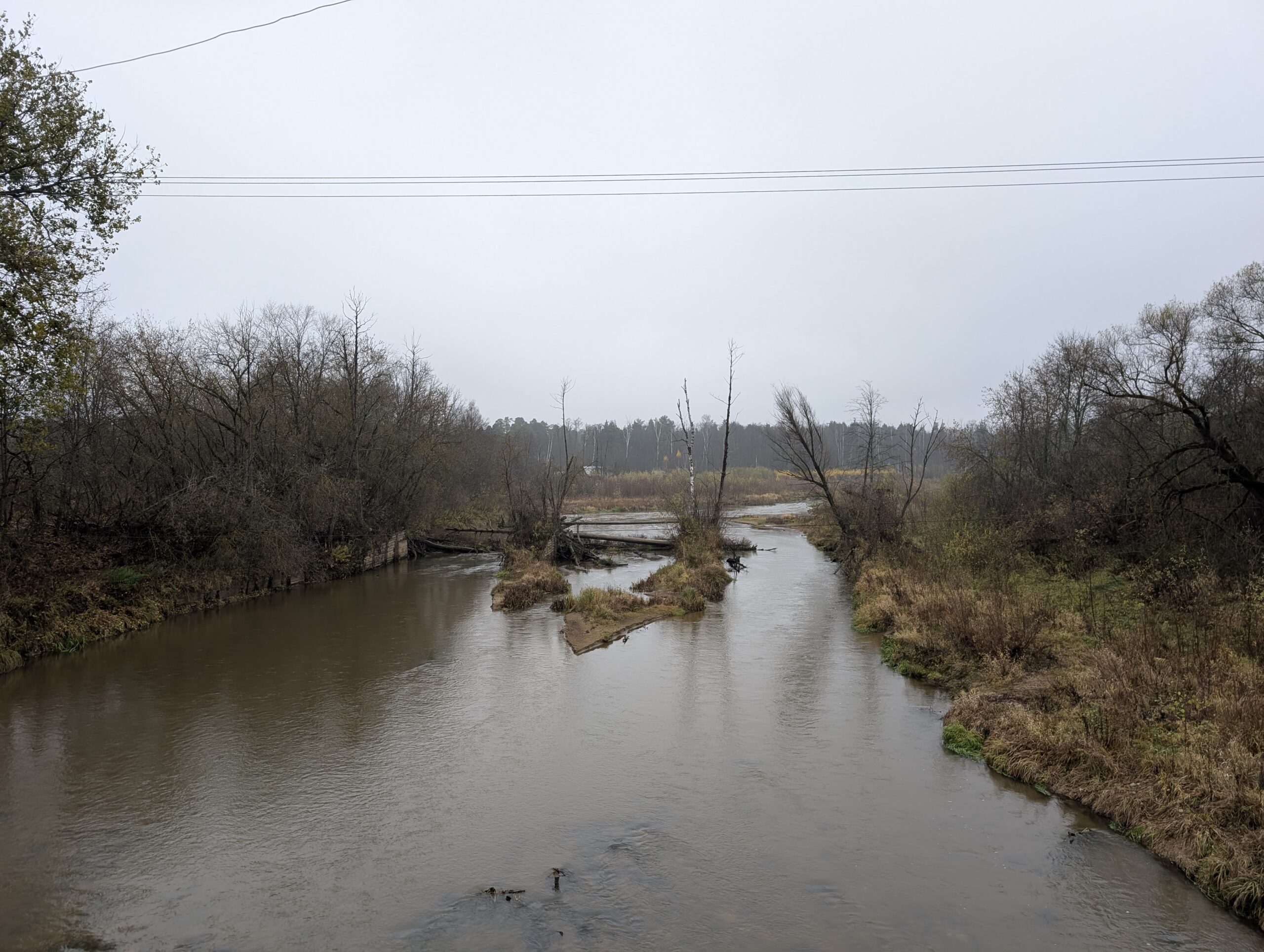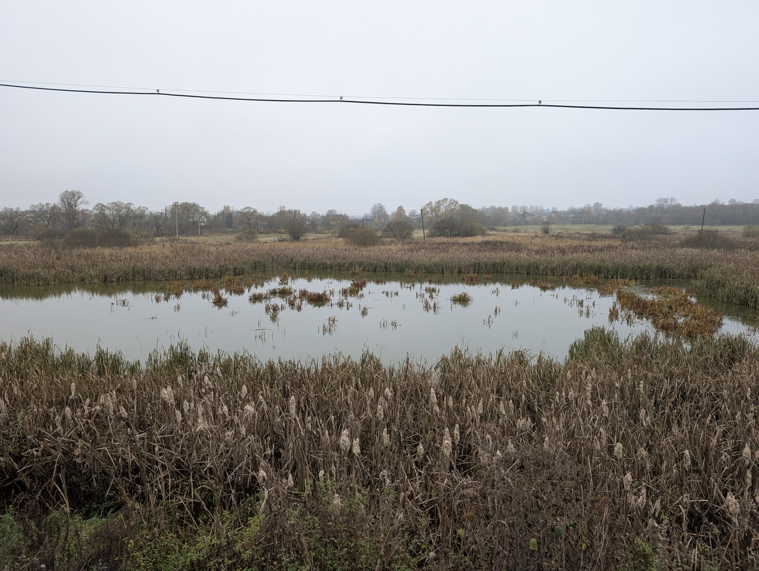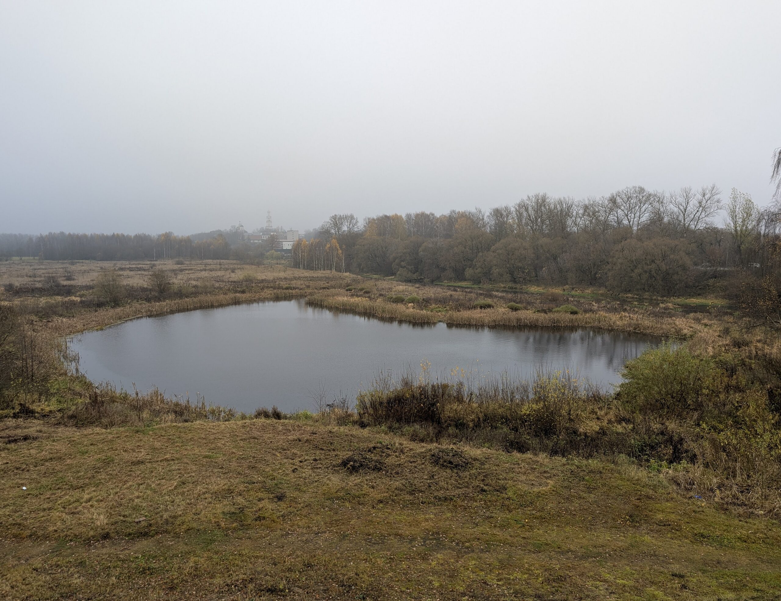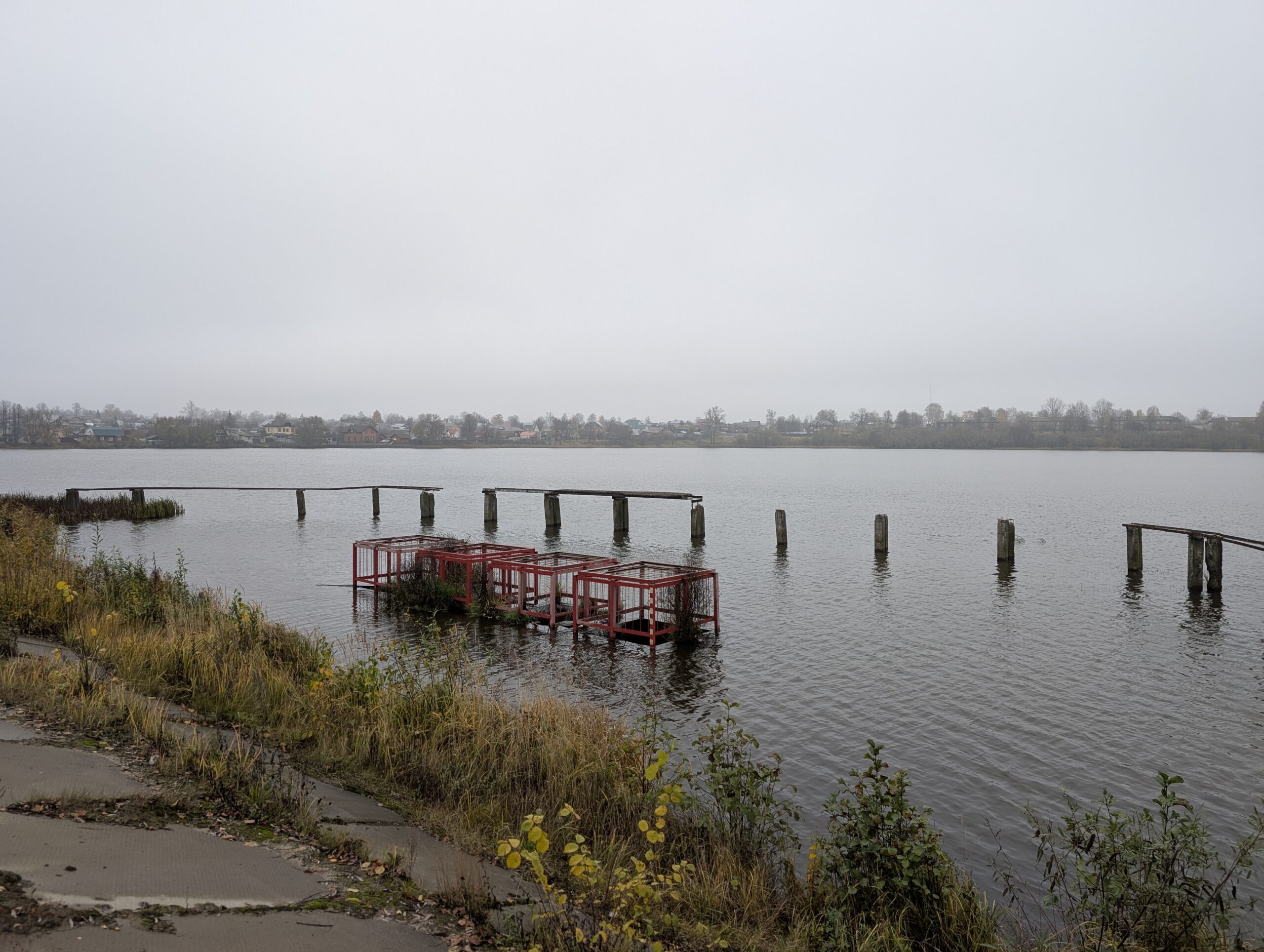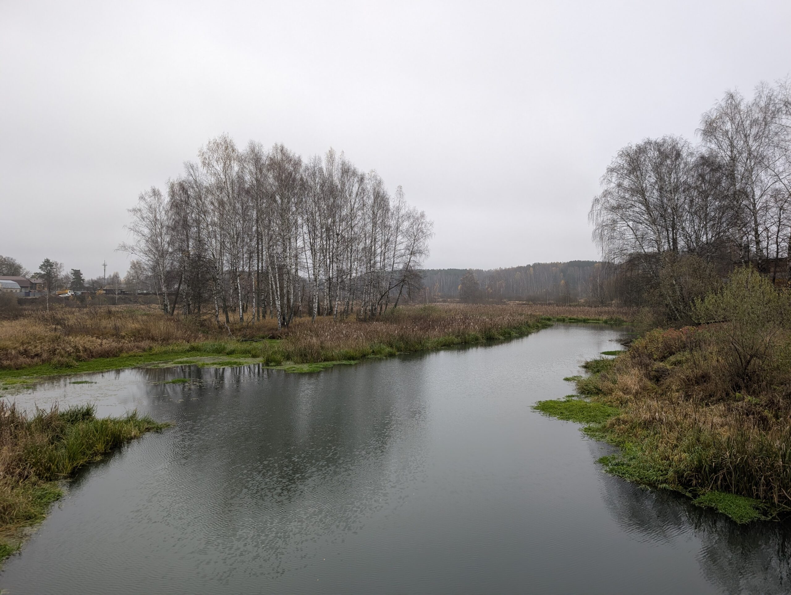 На месте озера до его создания находилось болото — с другой стороны дамбы до сих пор сохранилась небольшая его часть, где обитают утки. Правда, сейчас почти все они уже улетели, но некоторые из них, кажется, решили пойти против системы и остаться в Киржаче на зиму. Сможете найти утку на нижеследующем кадре? (Она там точно есть, и даже не прячется.)