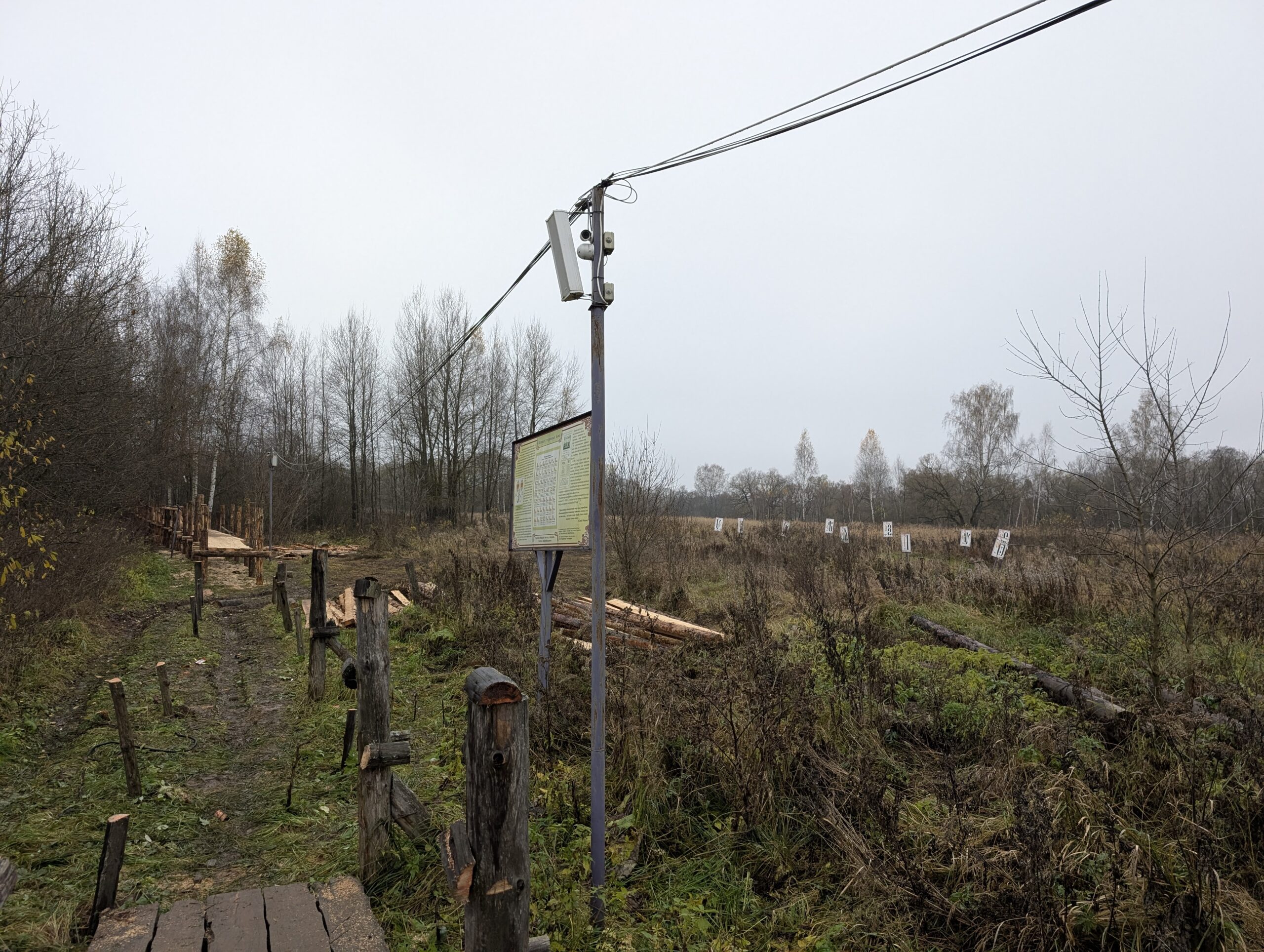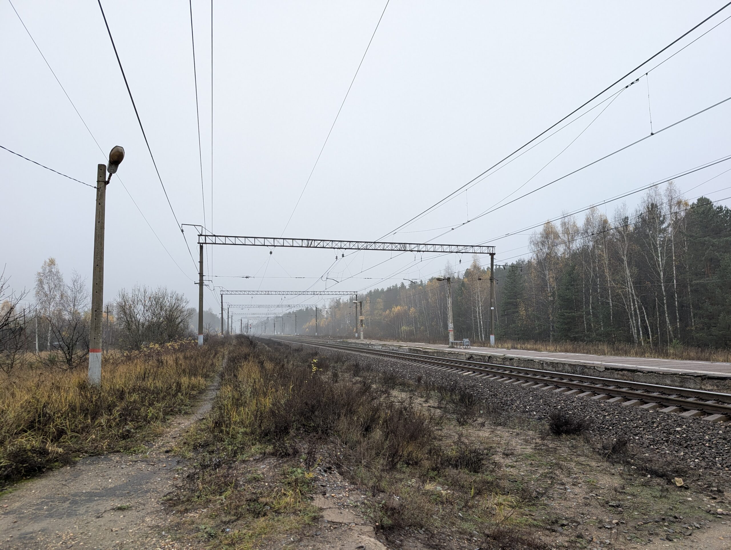 Суббота, 25 октября. Пасмурно, но дождя нет и не ожидается — более того, со вчерашнего дня стало ощутимо теплее, хотя всё равно на всякий случай беру с собой термобелье, так как осенью погода может быть непредсказуемой. Выгружаемся из электрички на станции Усад Горьковского направления — логичнее было бы начинать в Орехово-Зуево, где находится развязка с кольцом, но тогда пришлось бы какое-то время ехать либо по перегруженным автотрассам, либо по грязи — ни один из этих вариантов не является для нас приемлемым.