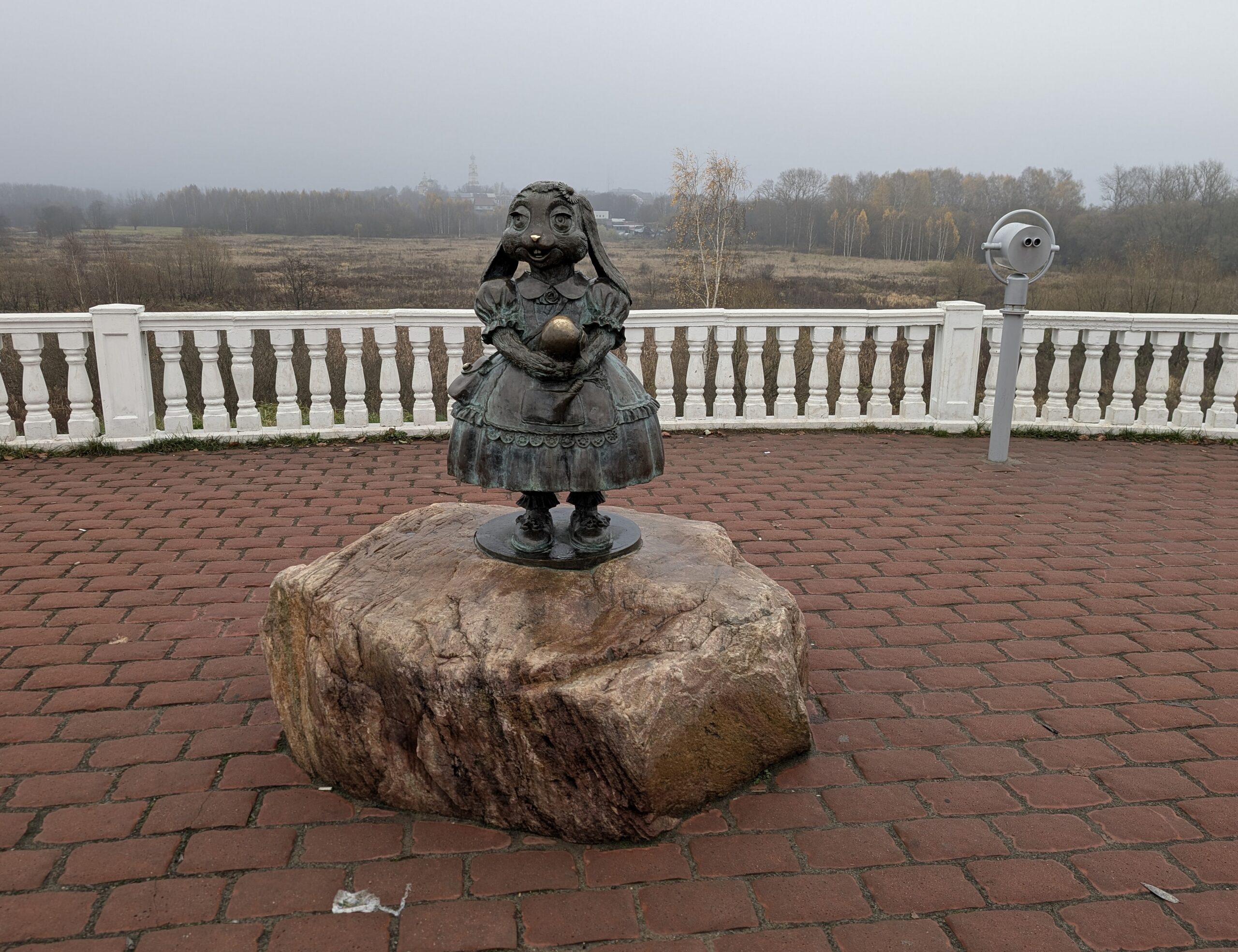 Бинокль, установленный на смотровой площадке, в деле поиска зайцев нам никак помочь не сможет: стёкла запотели изнутри, и как ни всматривайся, всё равно ничего не увидишь. Нужно было брать свой, но почему-то каждый раз, когда я это делаю, он мне не пригождается — а теперь вот он потребовался, и его нет. Вот вам наглядная демонстрация закона подлости в действии.