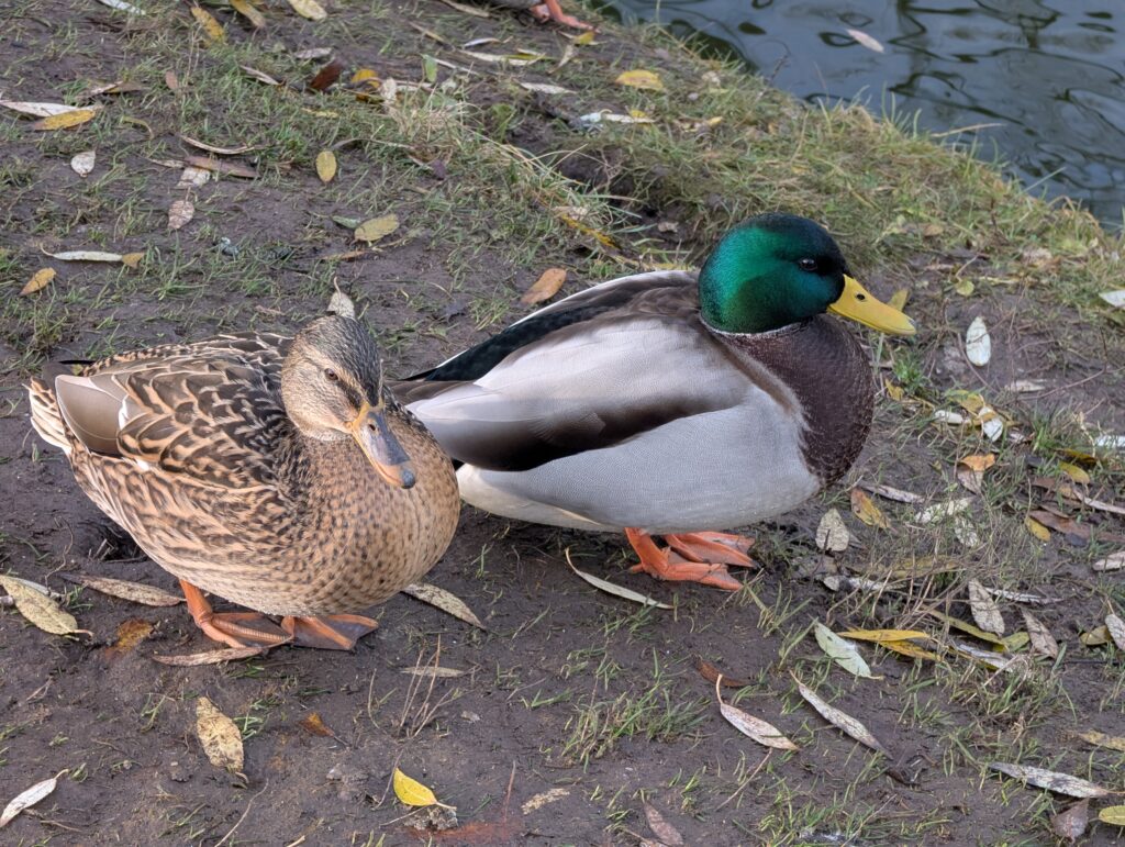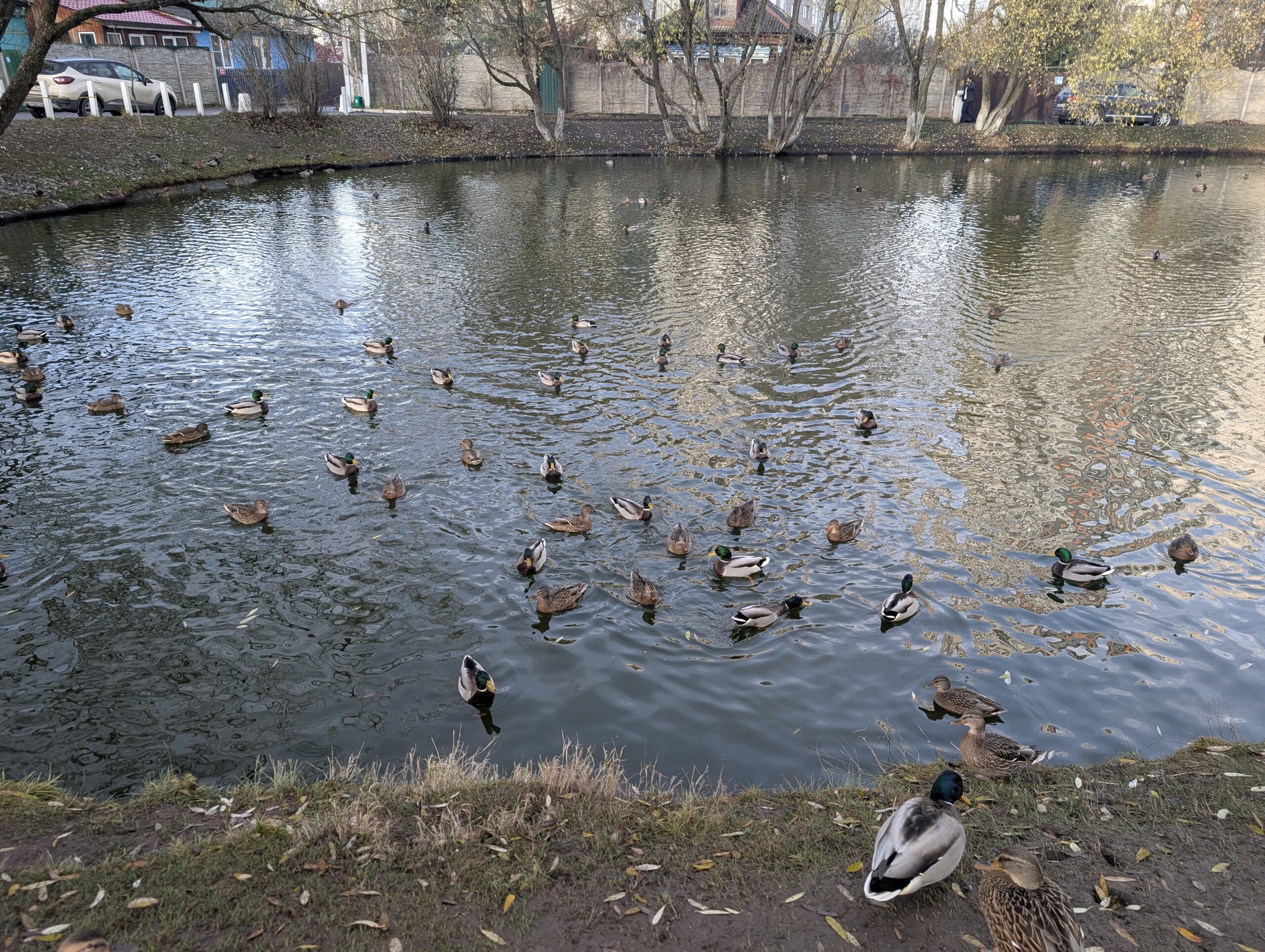 Утки практически не боятся людей, что явно идёт им на пользу — кормят их тут очень хорошо. Но в очередной раз хочу напомнить, что лучше кормить птиц не хлебом, а специальным кормом, который можно приобрести в зоомагазине, ну или заказать онлайн. Не всем уткам такой корм нравится, но к красногорским это точно не относится — склевали без остатка всё, что у меня было.