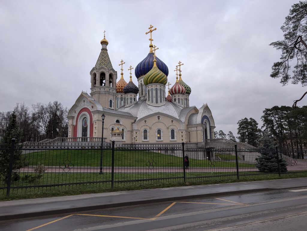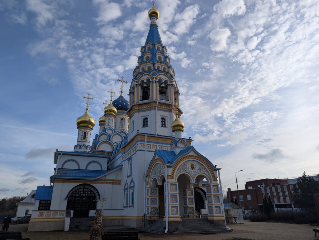 На контрасте с богомолом, здешние храмы и церкви просто-таки пестрят всеми цветами радуги. Наиболее пёстрый из них, вероятно, даст фору самому Покровскому собору, что стоит на Красной площади столицы. Жаль только, что солнце снова умудрилось потеряться где-то за тучами, да ещё и под конец светового дня — в лучах заката храм смотрелся бы гораздо эффектнее.