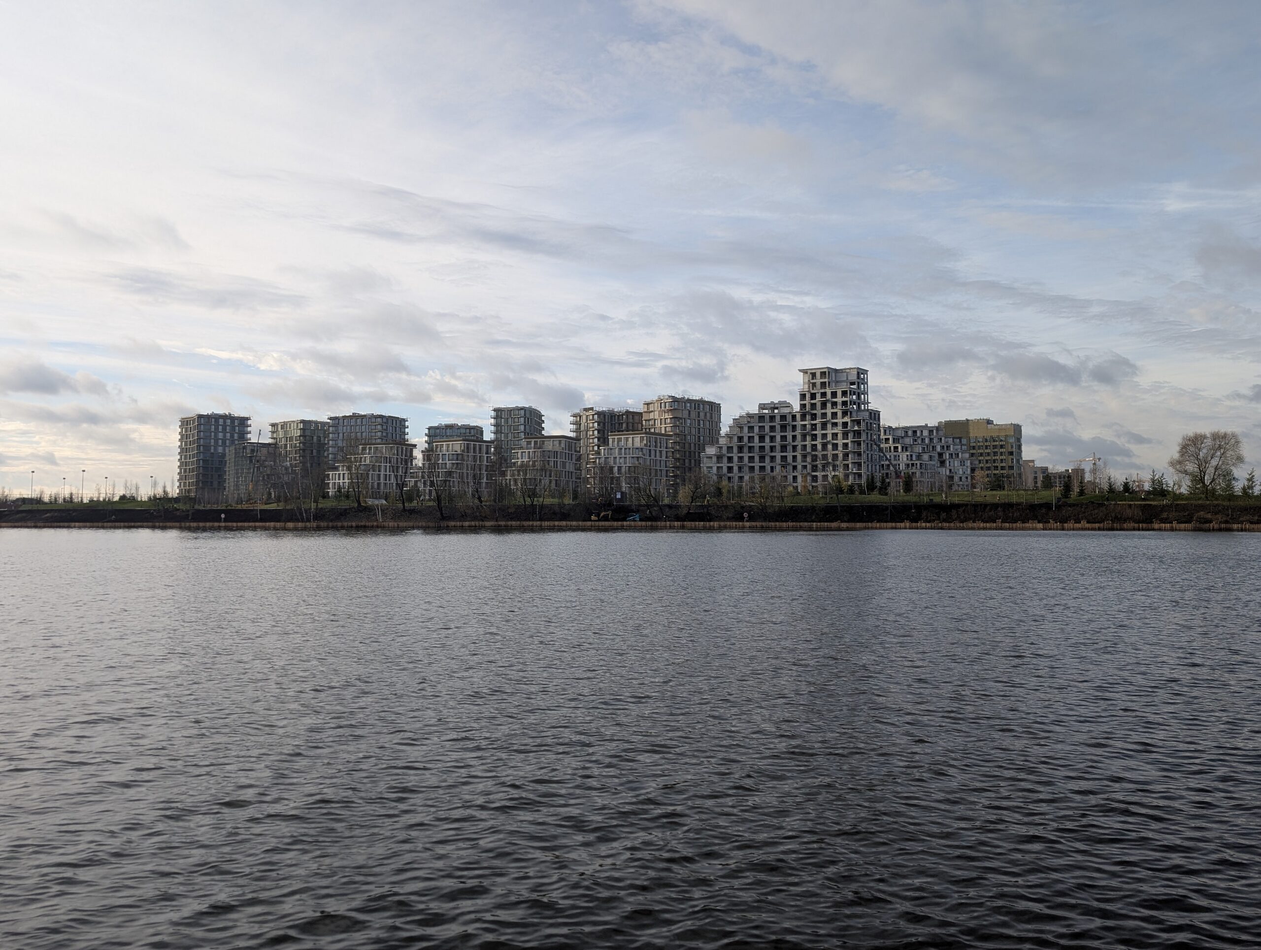 На противоположном, левом берегу идёт строительство очередного элитного ЖК под названием «СберСити» — и да, он тоже относится к Москве, что лишний раз подтверждается намерением провести там метро. Если верить карте, то линия пройдёт как раз примерно через то самое место, откуда был сделан нижеследующий кадр. Открыть её обещают в конце следующего года, и этому обещанию я вполне готов поверить.