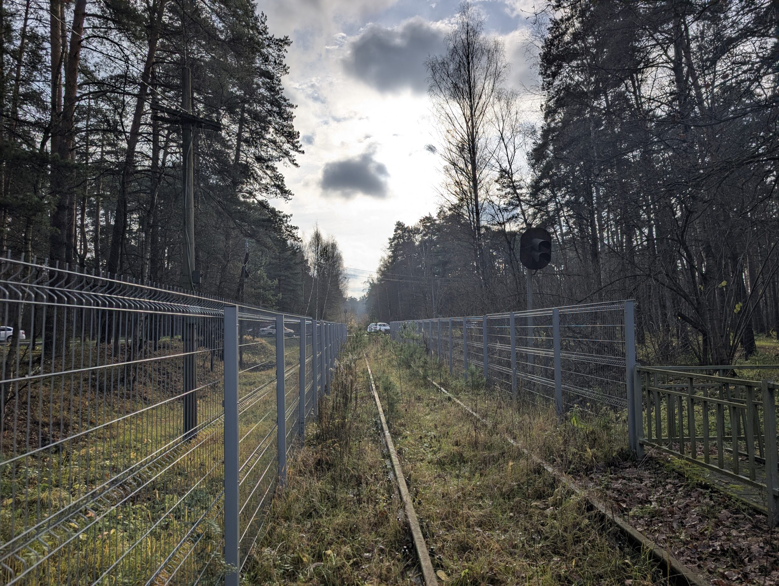 В районе пешеходного перехода через рублёвскую ветку близ Рублёво-Успенского шоссе рельсы зачем-то огородили забором. Судя по обилию растительности в междупутье, грузового движения здесь нет уже как минимум несколько лет. Ну а пассажирского, скорее всего, никогда и не было.