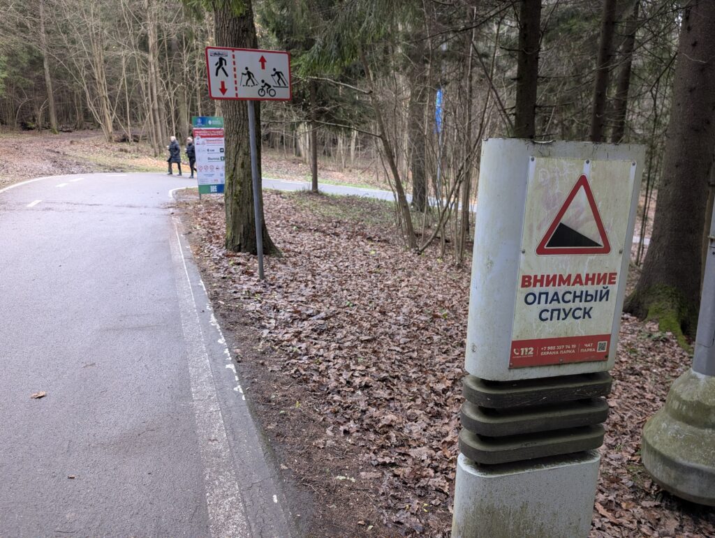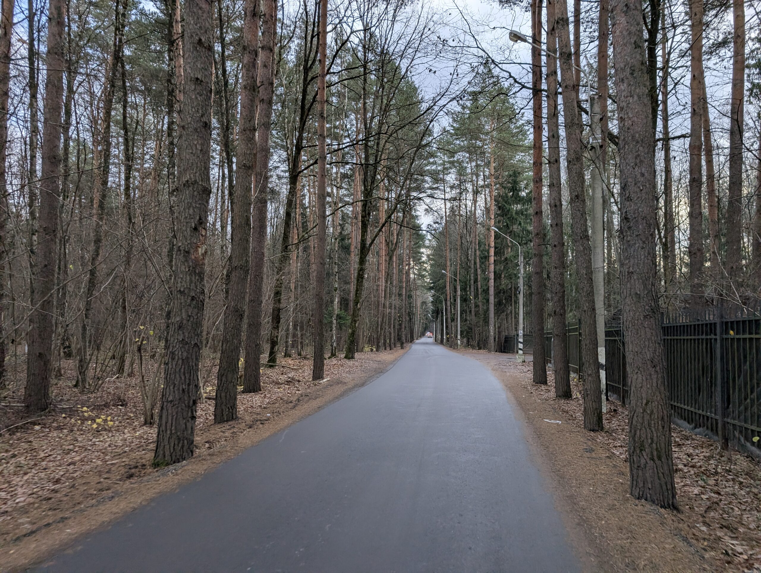 В самом Одинцово центральная площадь, к сожалению, была целиком перегорожена из-за ремонта, зато удалось посмотреть лыжероллерную трассу, проложенную в лесопарке на северной окраине города. Трасса подходит в том числе и для велосипедистов, но вне зависимости от выбранного способа передвижения попотеть придётся изрядно.