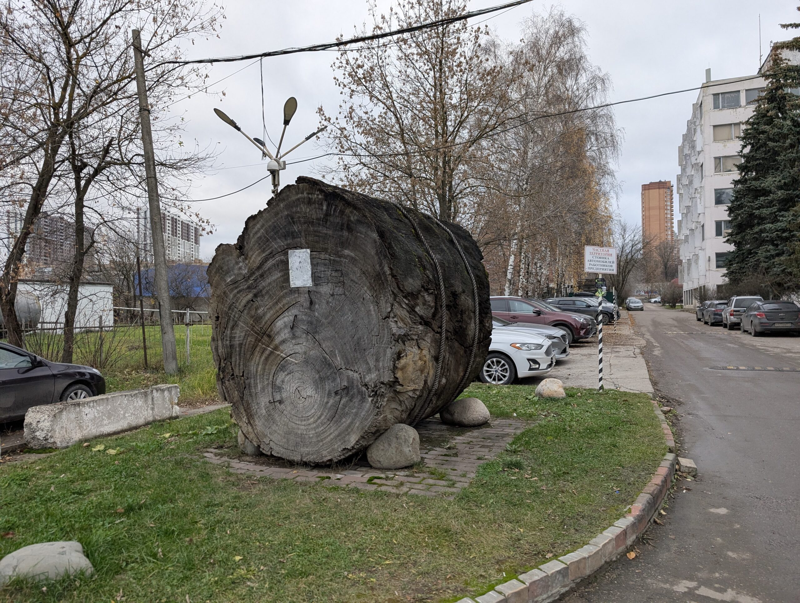 Прилегающая к рельсам промзона скрывает необычную достопримечательность — кусок огромного бревна. К торцу его прибита информационная табличка, но текст на ней полностью стёрся, поэтому для выяснения подробностей приходится обращаться к сторонним источникам. Похоже, что объект был установлен по инициативе ныне не существующей мебельной фабрики.