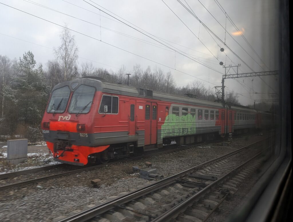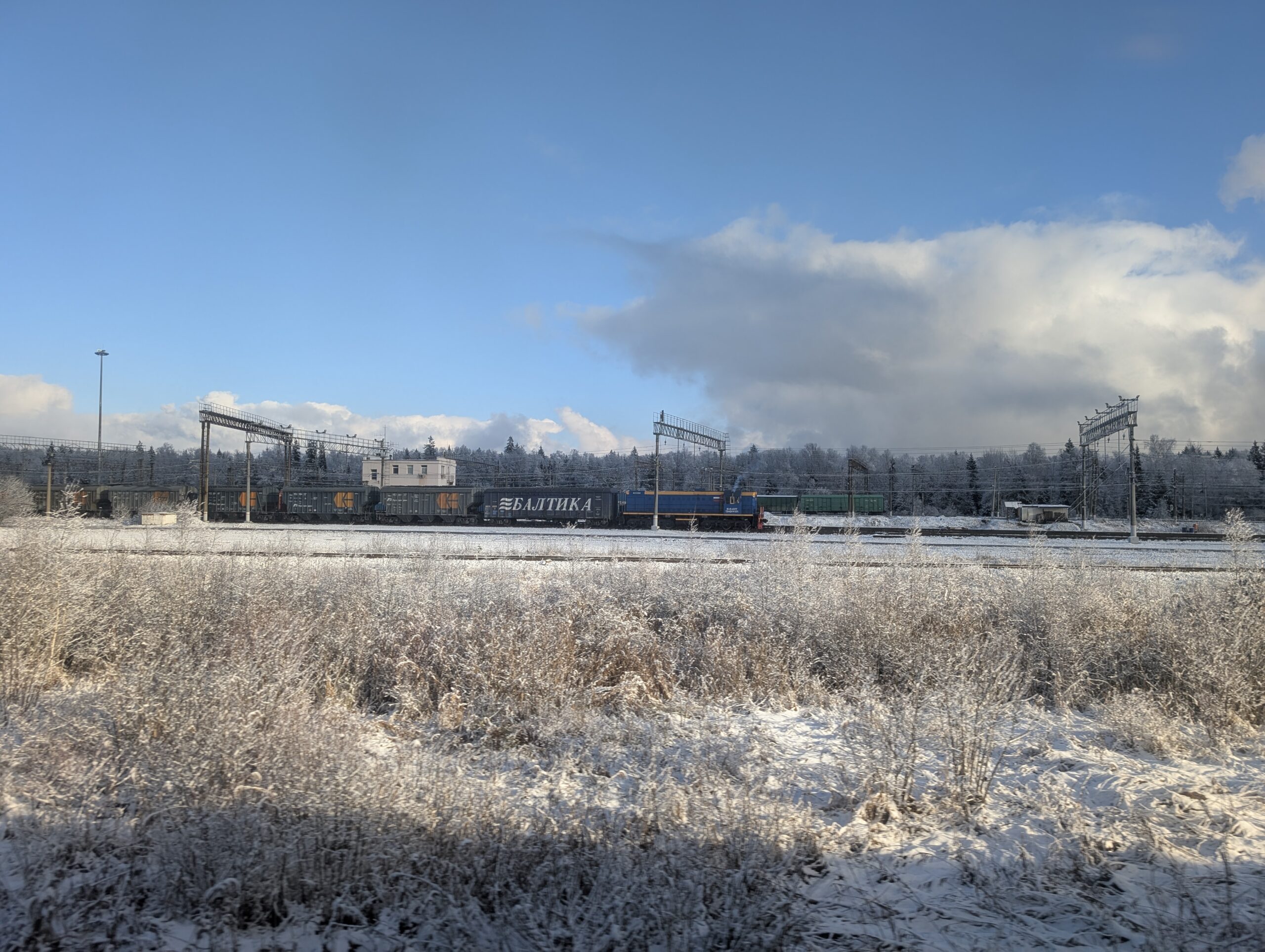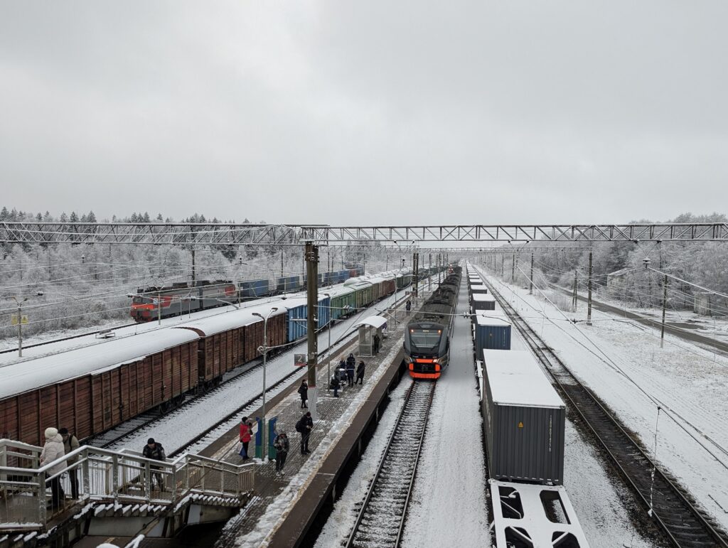 Следующий перегон до станции Сандарово длиной более двадцати километров представляет собой один из самых глухих участков на всём кольце. Проблема тут как в низкой частоте движения, так и в загруженности линии грузовыми поездами, из-за которых электрички могут сильно опаздывать, вынуждая потенциальных пассажиров переходить на другие виды транспорта. Например, в прошлом году я застрял где-то здесь примерно на три часа, после чего мой энтузиазм относительно дальнейших поездок по кольцу резко поубавился.
