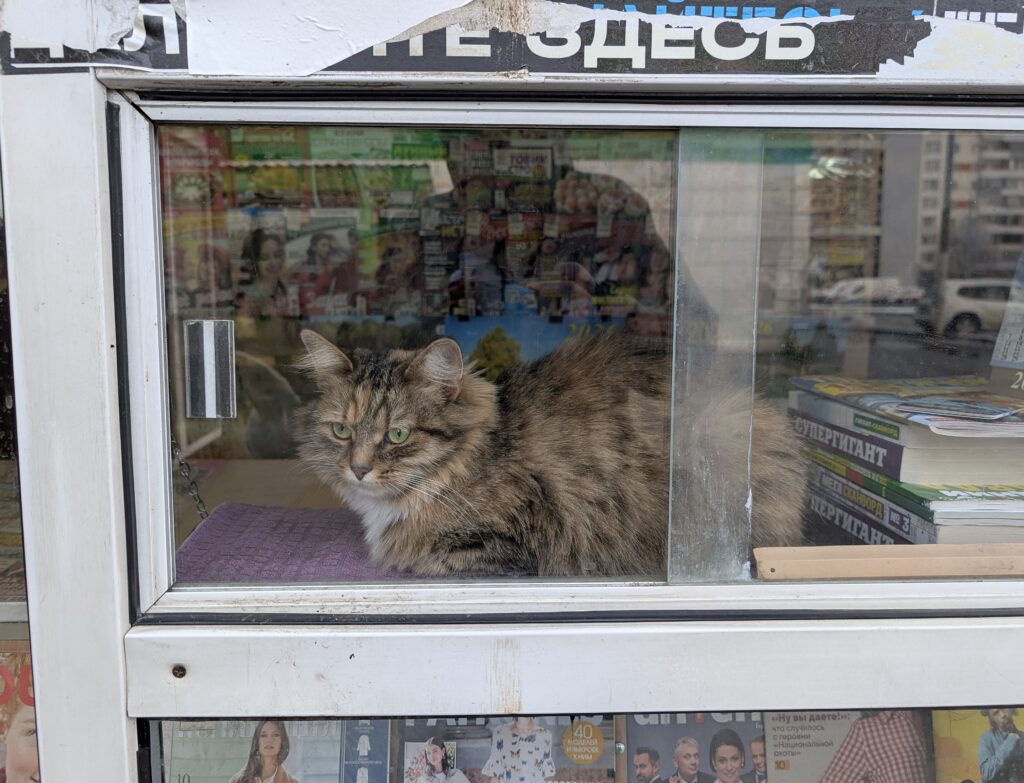В местном газетном киоске почему-то торгуют сувенирными магнитами с символикой подмосковного города Наро-Фоминска, который хоть и расположен отсюда неподалёку, но к посёлку Киевскому никакого отношения уже давным-давно не имеет. Жаль: я думал найти магнит с железной дорогой или хотя бы с храмом… Спросил бы у продавца, но вот незадача: разговаривать он не умеет, да и вообще у него лапки.