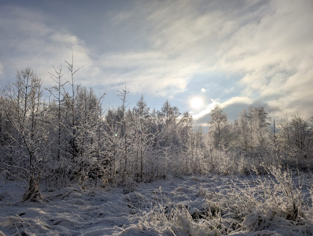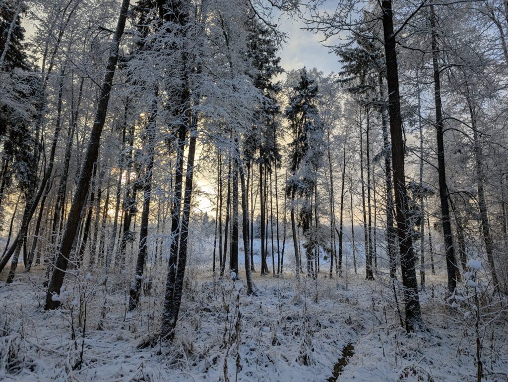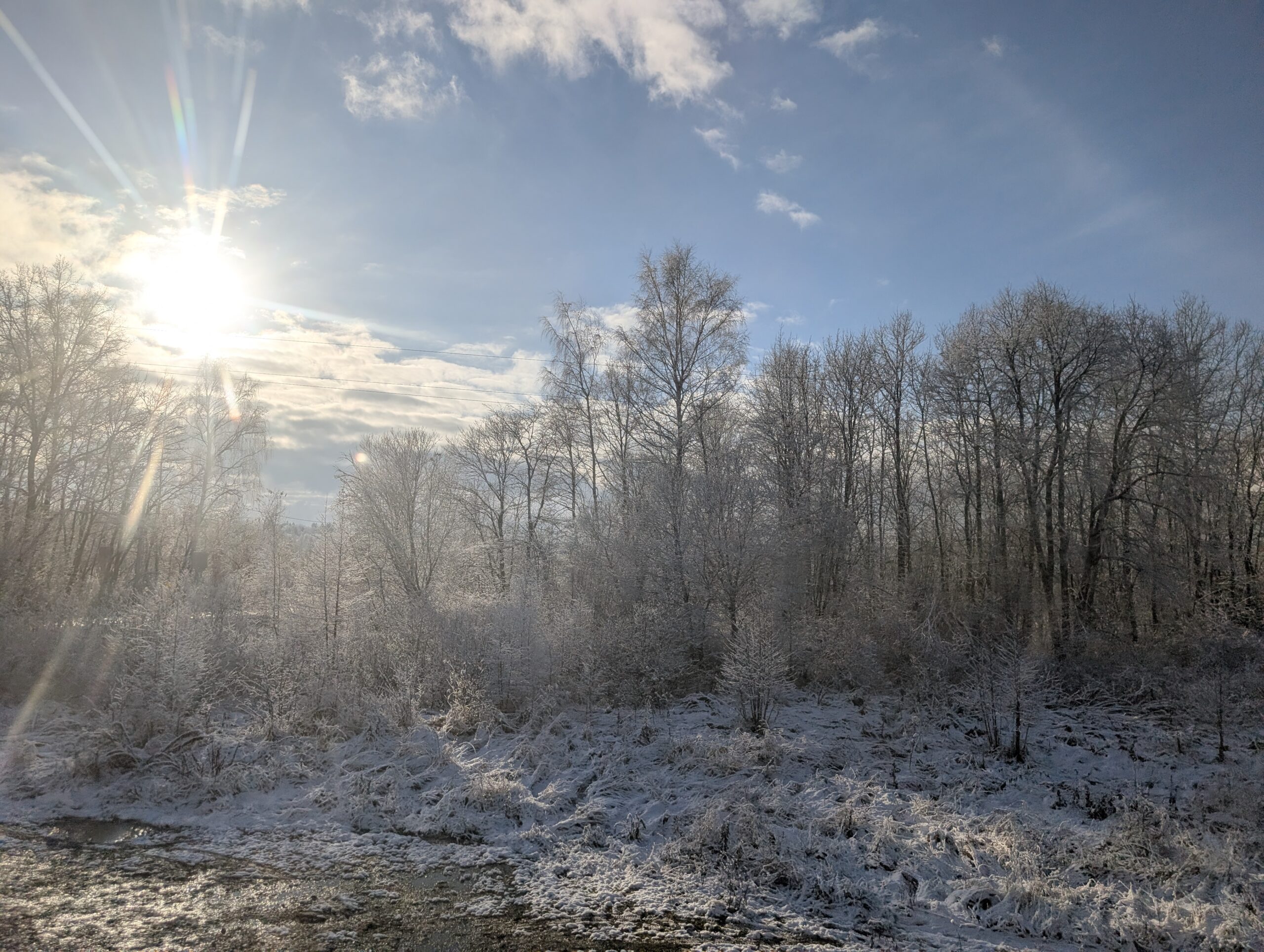 Яркое солнце — последнее, чего не хватало для идеального в моём представлении зимнего пейзажа. Вот теперь всё на своём месте, но боюсь, что это ненадолго — температура воздуха сейчас околонулевая, а ясная погода зимой обычно бывает только при морозе. А сейчас у нас тут всего лишь демо-версия =)