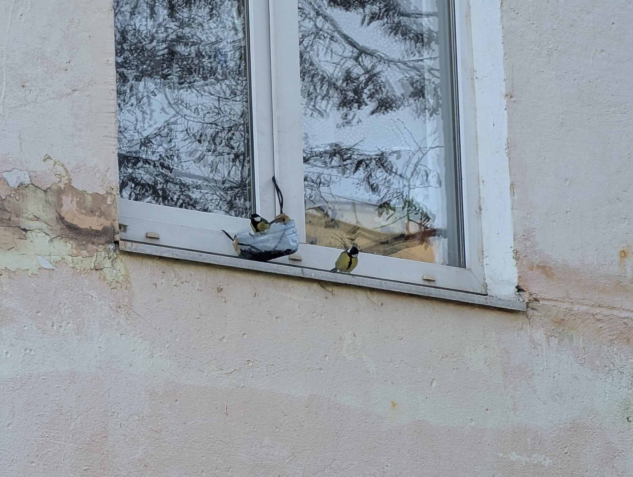 Синицы, как и голуби, вездесущи — достаточно только повесить кормушку, и они сразу же прилетят. Голуби обычно узнают о ней с небольшой задержкой, что никак не отменяет необходимости от них защищаться. Ну либо нужно определиться, для синиц у вас кормушка или для голубей — если там по бокам висит сало, то, видимо, для синиц, но голуби-то об этом не в курсе! =)