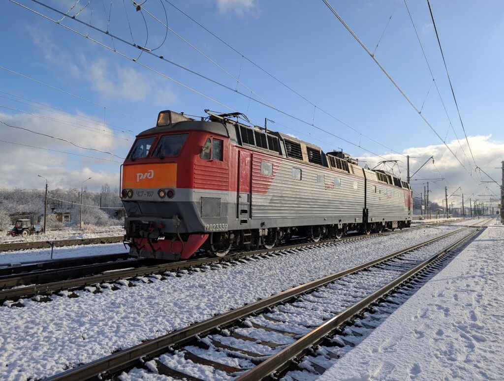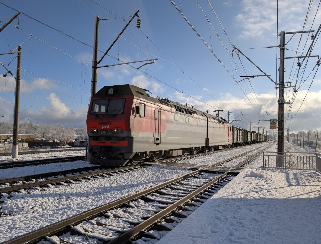 За одиноким локомотивом медленно тянется тяжёлый грузовой состав, ведомый элитным электровозом 2ЭС6-1337 (кто знает, тот поймёт =) приписки депо Орехово. Данный поезд, возможно, следует на Кубинку и оттуда на Смоленск — но это тоже ни в коем случае не железный факт, а всего лишь моё скромное предположение.