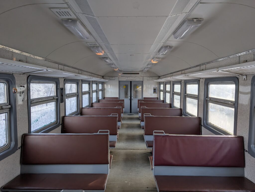 Вернувшись на вокзал, с некоторым удивлением обнаруживаю, что электричка из Кубинки до сих пор стоит у платформы, причём с закрытыми дверями. Сверившись с расписанием, понимаю, в чём дело: через пять минут тот же состав должен уйти на Яганово. Двери в итоге открывают за полминуты до отправления — видимо, решили сэкономить на отоплении. Как оказалось, маршрутное табло всё же не соврало, хотя формально это два разных рейса.