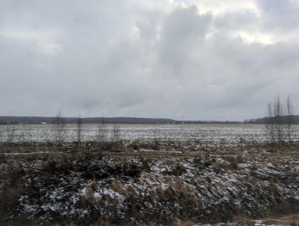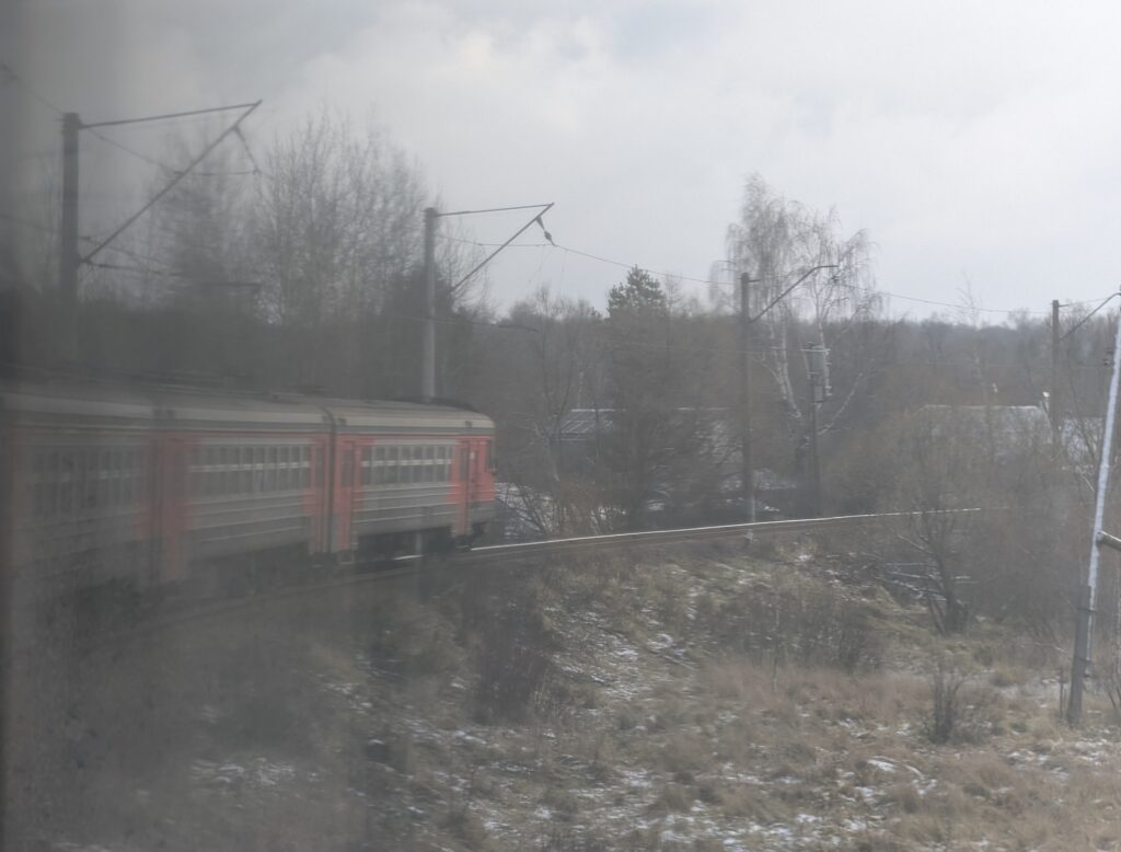Впереди ещё один сверхдлинный перегон — свыше двадцати пяти километров между станциями Детково и Усады-Окружные, откуда уже рукой подать до конечной станции Михнево на Павелецком направлении. Местность здесь примерно такая же глухая, как между Крестами и Сандарово, но примерно с середины пути вместо лесов начинают преобладать открытые пространства. Снега становится всё меньше, а туч — всё больше: увы, как я и предполагал, ясной погоды хватило ненадолго.