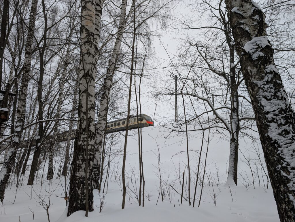 Единственный фактор, способствующий периодическому нарушению покоя — регулярно проносящиеся где-то на заднем плане электрички. Но думаю, что к ним вполне можно было бы привыкнуть, тем более что шума они производят не так уж много по сравнению с грузовыми составами, которые на этом участке практически отсутствуют. Кроме того, электропоезда не загрязняют воздух.