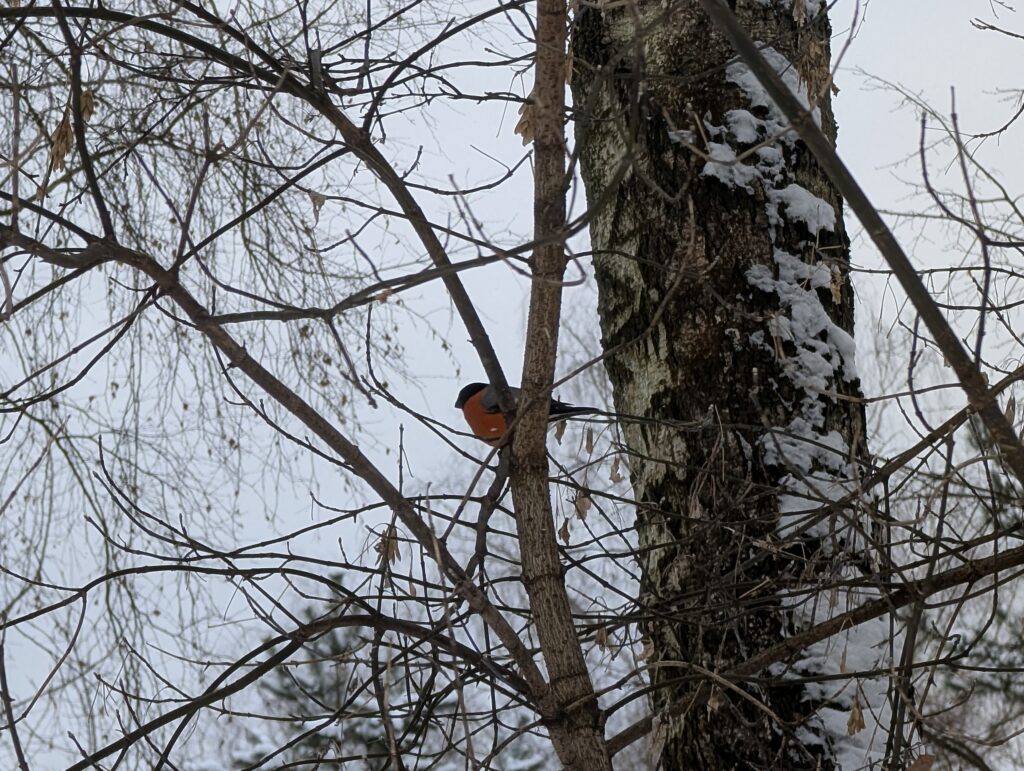Снегири же, наоборот, ведут себя крайне стеснительно — стоит хоть немного к ним подойти, как они тут же упархивают на какие-то отдалённые деревья, причём непременно повыше, чтобы их было сложнее заметить и поймать в кадр. Однако настоящие мастера скрытности — зеленушки: сколько я их там слышал, но увидеть ни одной так и не смог…