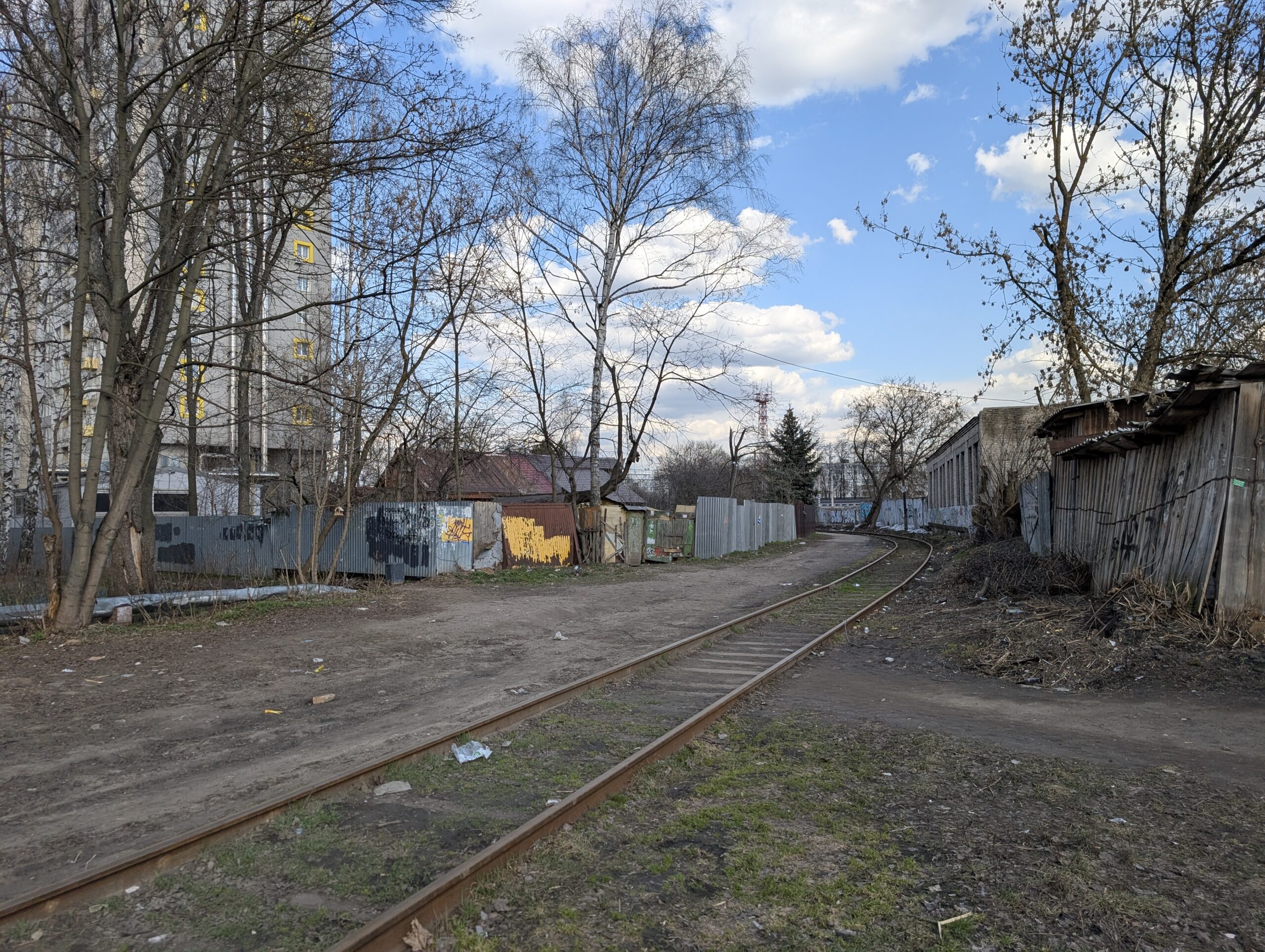 Основная часть города Пушкино лежит к востоку от железной дороги, но сегодня мы будем исследовать места на противоположной стороне — пускай с точки зрения туристической привлекательности делать там особо нечего, но я уже давно привык довольствоваться малым. Начнём, пожалуй, с подъездного пути, ведущего в небольшую складскую промзону на окраине. Накат на рельсах есть, по виду очень слабый — то есть в теории здесь что-то иногда ездит, однако наблюдать реализацию этой теории на практике мне пока что не приходилось.
