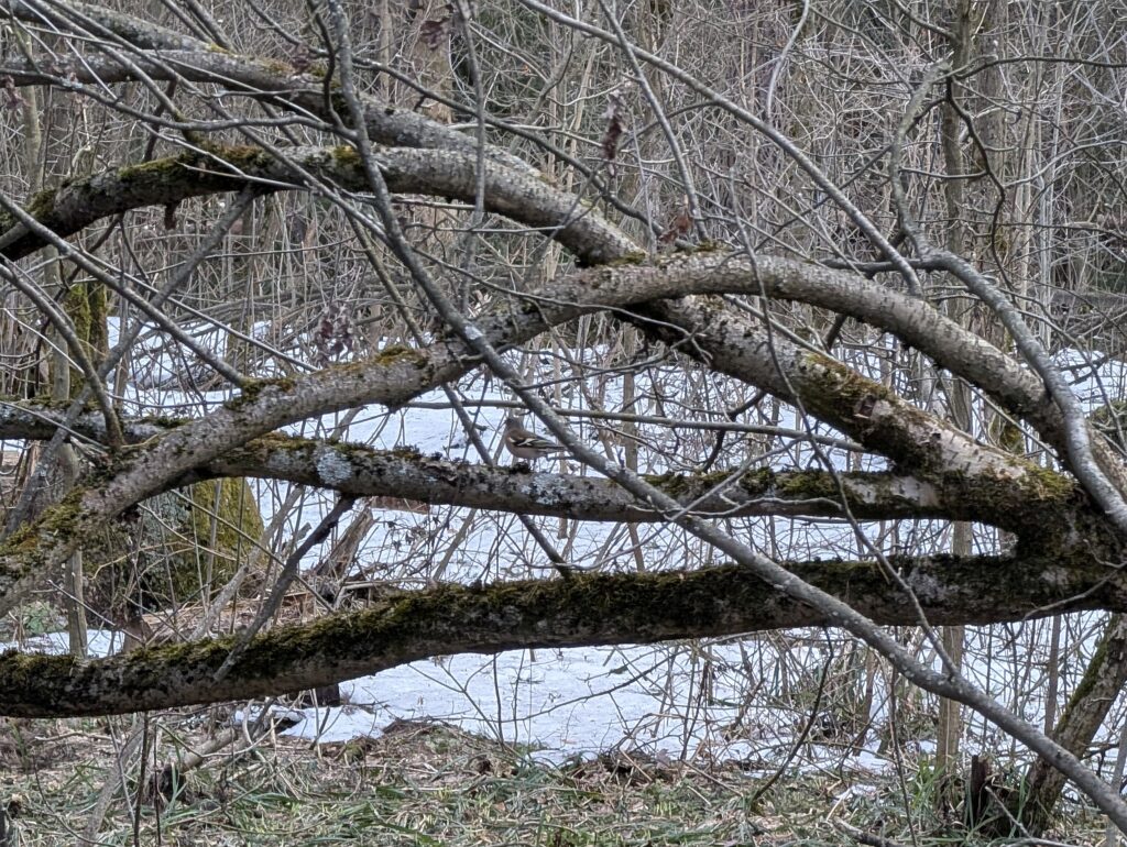 А через дорогу, прямо напротив территории музея, лежит огромная заболоченная низина, немного напоминающая мне Сходненскую чашу в Москве. Должно быть, тут обитает множество водоплавающих птиц, но что-то мне подсказывает, что спускаться вниз сейчас лучше не стоит — хотя бы потому, что там наверняка очень грязно. Кроме того, на обратном пути придётся подниматься, а мы уже и так достаточно много сегодня прошли… Лучше приехать потом ещё раз, но уже летом.