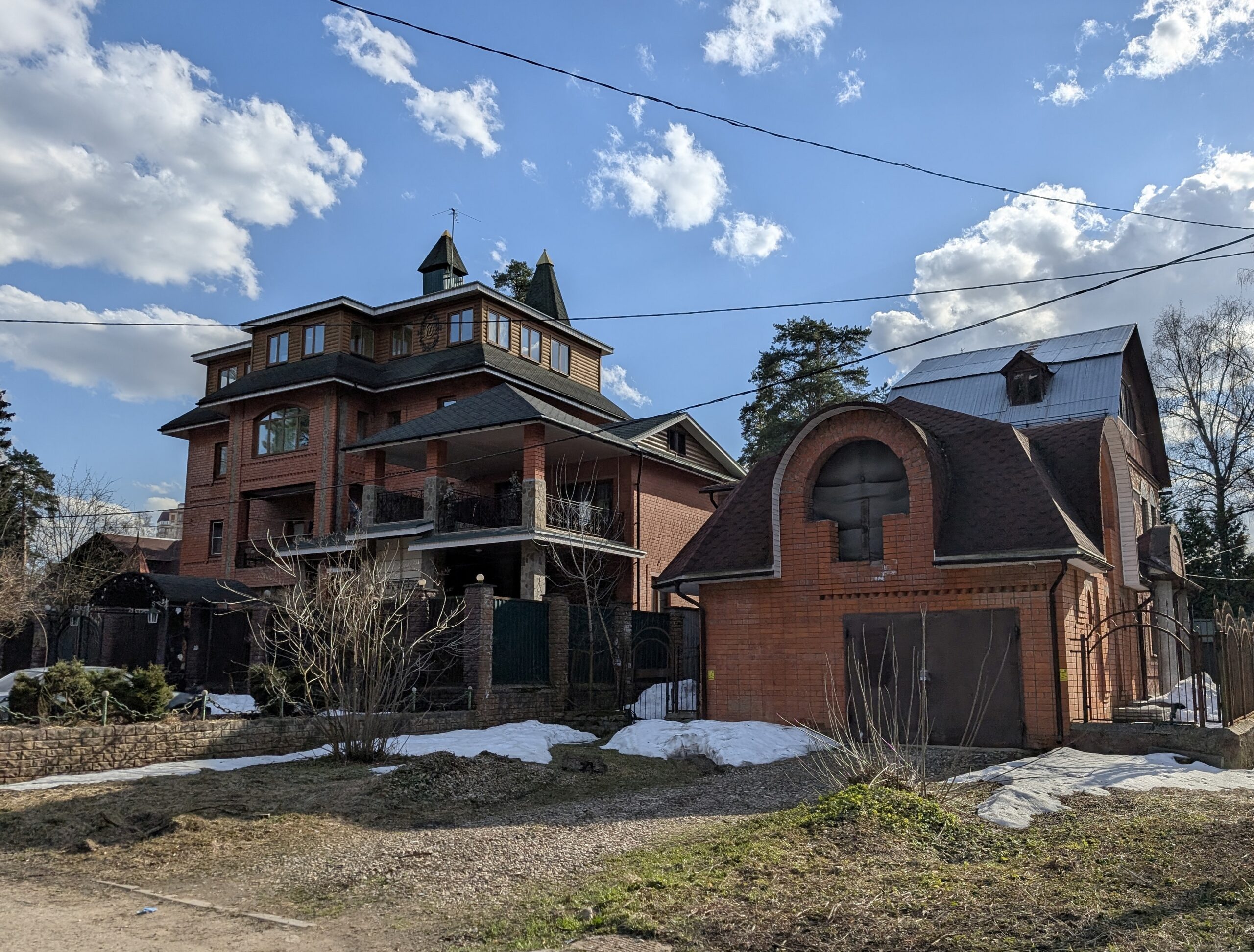С южной стороны от территории лесопарка начинается зона частной застройки, превалирующей над многоквартирными домами почти во всех районах «обратной» стороны города. Стоит отметить, что не все местные жители могут похвастаться скромностью, хотя бывают и гораздо более запущенные случаи. Тем не менее, сразу видно, что народ здесь живёт не самый бедный — всё же столичный регион, а не какая-то глухая провинция.
