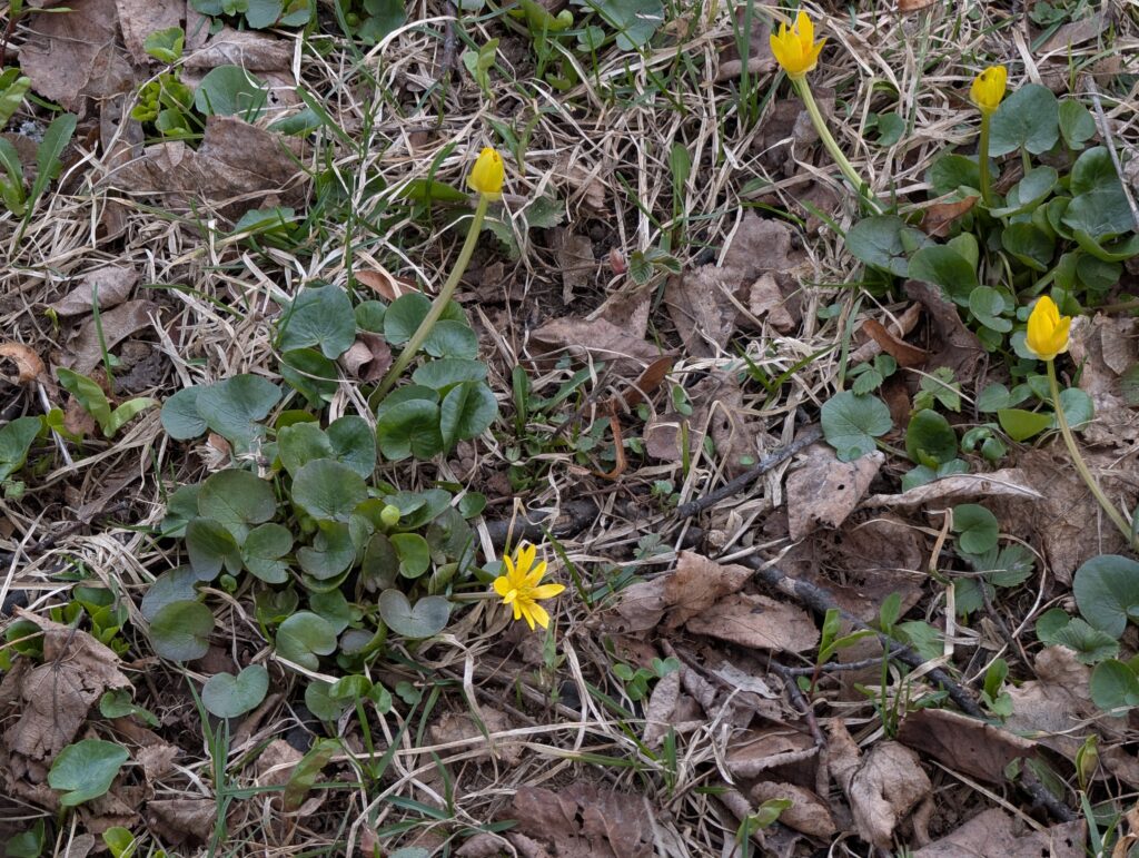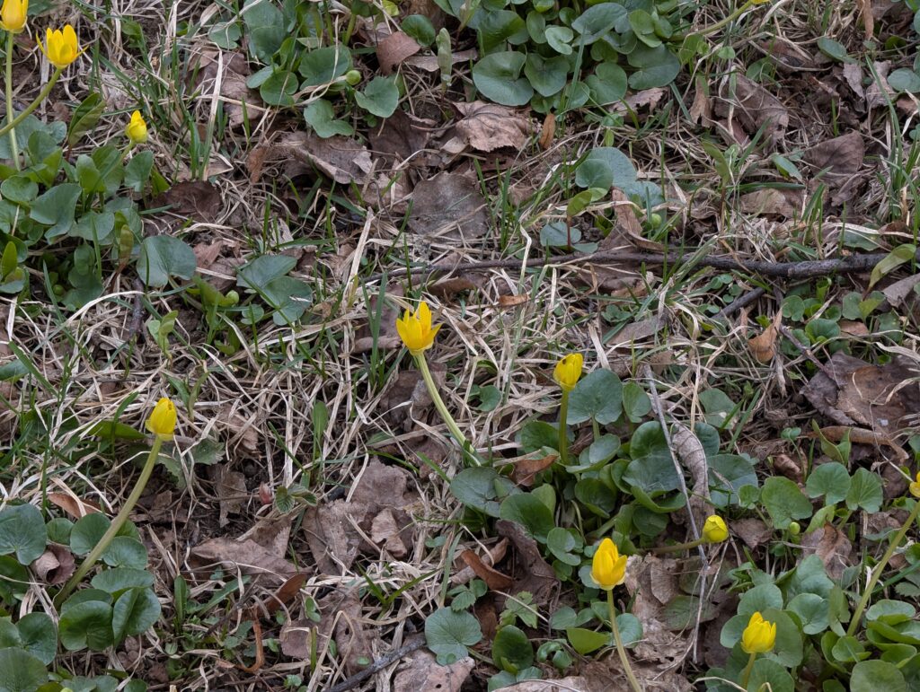 За отсутствием в ε-окрестности рассматриваемой нами области архитектурных шедевров можно обратить взгляд в другую сторону, а именно — на шедевры природные. Легче всего среди них узнаются подснежники, хотя, если быть честным, ещё до недавнего времени я не очень-то представлял себе, как они выглядят. Стыдно, но факт… А вот жёлтые цветочки удалось определить благодаря пользователям iNaturalist, и теперь мы знаем, что это чистяк весенний.