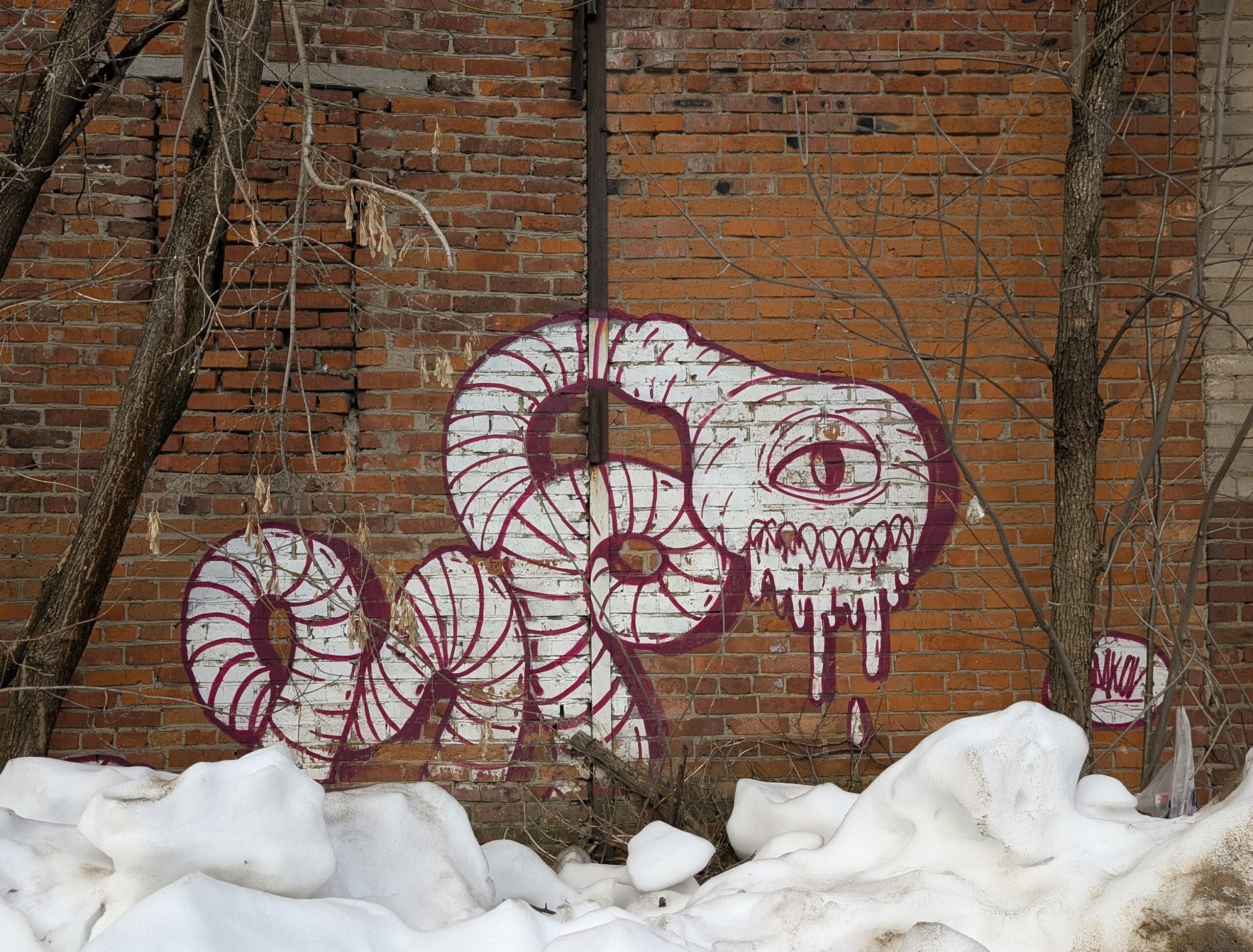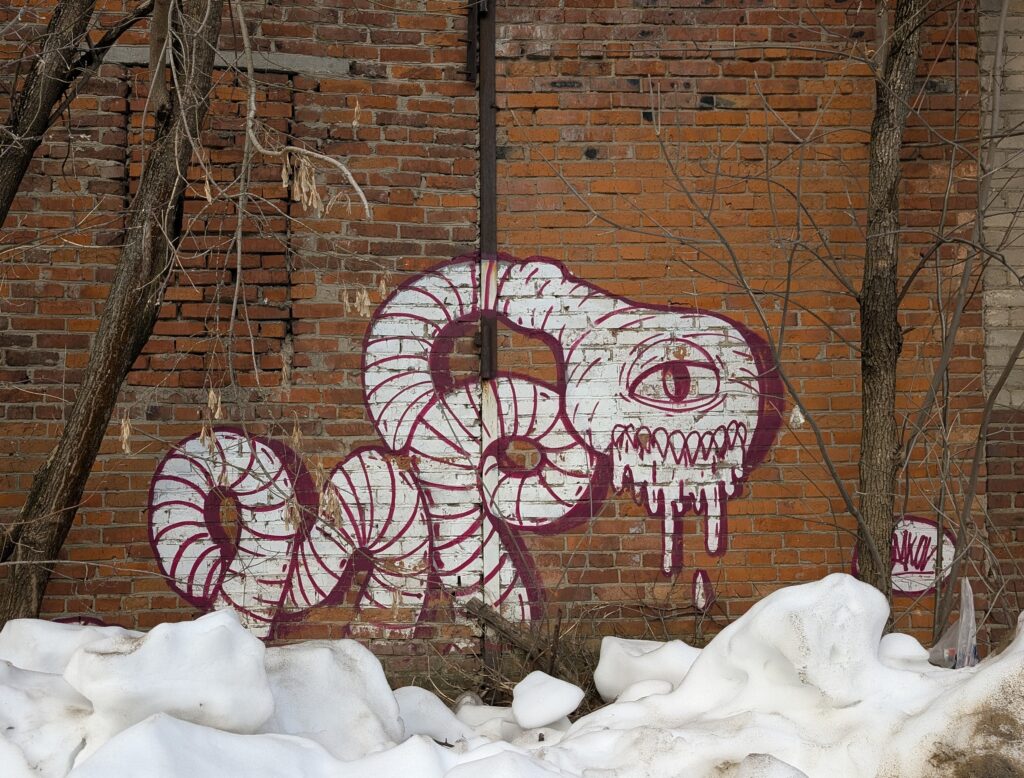 Биоразнообразие — это, конечно, очень здорово, но всё же с некоторыми формами жизни я бы предпочёл лишний раз вовсе не сталкиваться. Да и вообще хотелось бы надеяться, что существуют они исключительно в воображении пушкинских уличных художников, а также, возможно, ещё и в чьих-то ночных кошмарах. Я бы предположил, что кто-то явно слишком увлёкся «Дюной», если бы сам не дочитал недавно книгу — у тамошних червей нет таких глаз, что-то здесь не сходится…