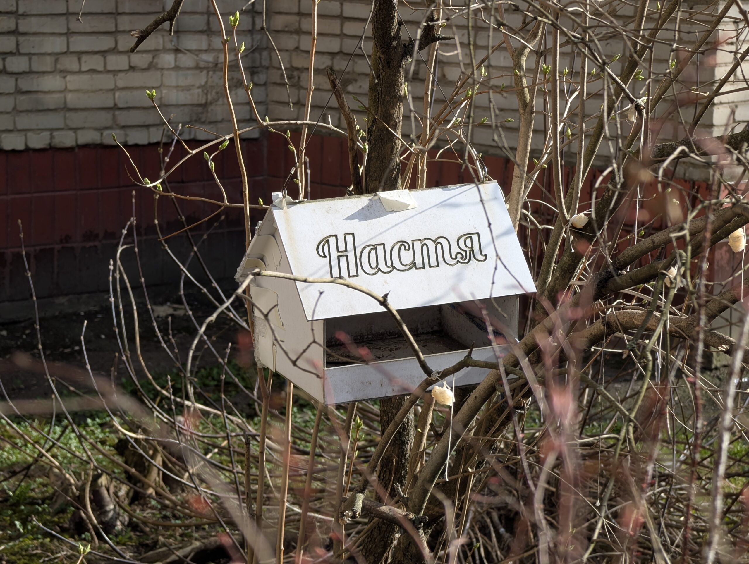 Кормушки для птиц вешают не только в парках, но и во дворах. И повидал я на своём веку этих кормушек уже немало, и кажется, будто меня уже ничем не удивить… но нет! Как вам кормушка, имеющая своё собственное имя? Такое я, по-моему, вижу впервые — жаль только, что слишком поздно, но лучше всё-таки поздно, чем никогда =) Надо сказать, что это даже в какой-то степени уместнее, чем «птица, ешь» и «клевать здесь»…