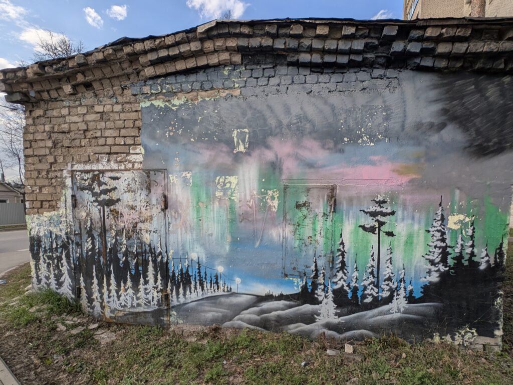 К слову, традиционного стрит-арта в Пушкино тоже хватает. Правда, за ним редко следят должным образом: сплошь и рядом попадаются облупившиеся и частично закрашенные работы. Вероятно, в городе сейчас просто нет своих художников, либо большинство композиций было выполнено приезжими. В любом случае, такое положение дел всё же намного лучше полного отсутствия каких-либо рисунков вообще.
