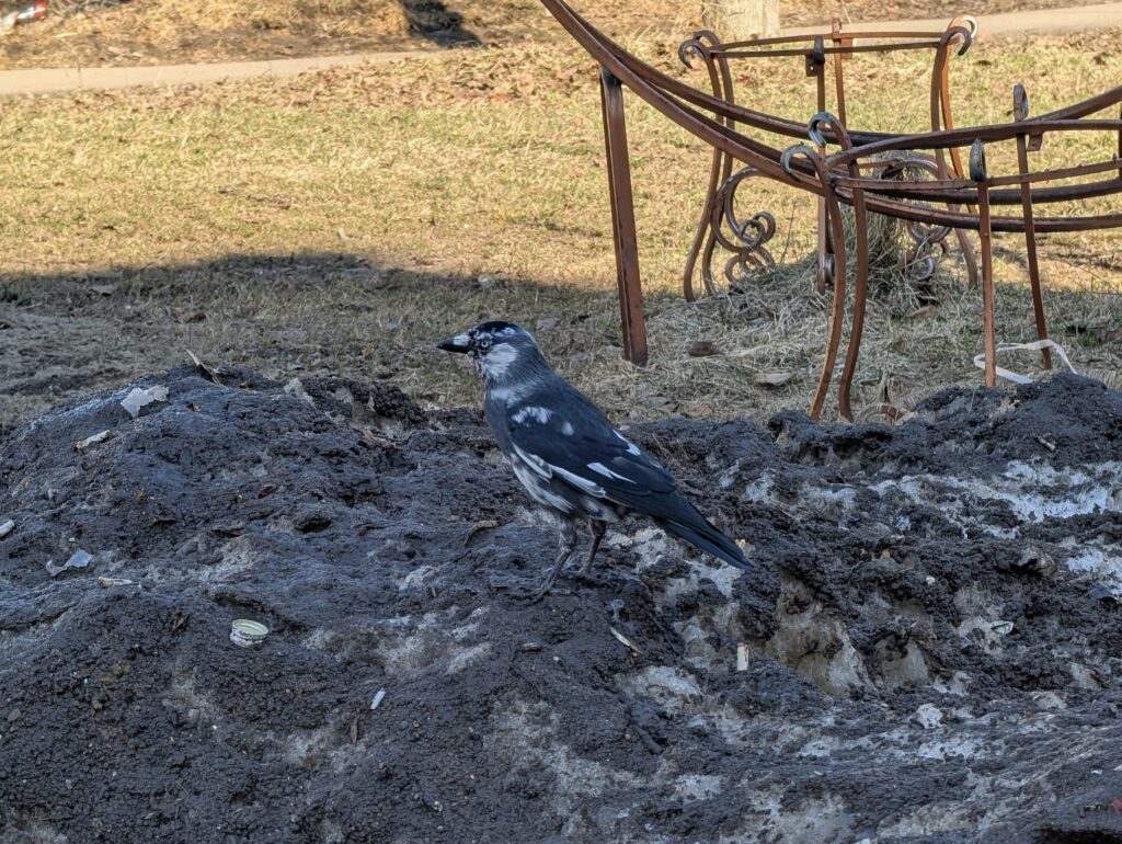 Гнездовой сезон — крайне напряжённый период, особенно в условиях города: подходящих мест мало, и за каждое идёт ожесточённая борьба. Неудивительно, что многие занимают «жильё» ещё зимой, используя его для ночёвки, причём очень часто это птички из той же самой пары, которая ранее уже гнездилась в том же месте. Конкретно в моём случае это был самец лазоревки, принимавший участие в прошлогоднем выведении птенцов — ранее он уже отыскал самку, готовую убирать за ним мусор, а теперь она наконец приступает к строительству гнезда.